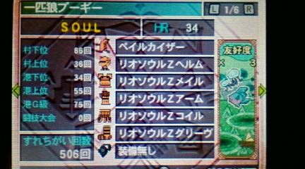 G級レウス装備を完成させてから全くやってなかったので、HRも大して上がってません。