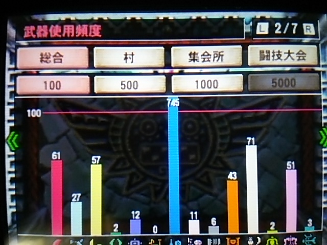 次点で操虫棍・大剣・片手・ヘヴィといった感じですね。