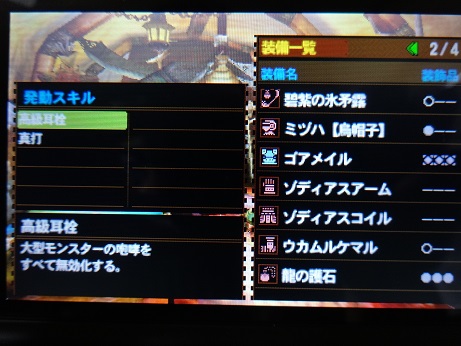乗り上手・スタミナ回復・砥石高速・業物・耳栓・回避性能