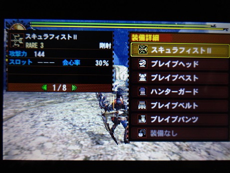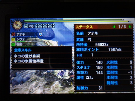 腕のハンター装備は発掘防具で防御18ぐらいはあります。