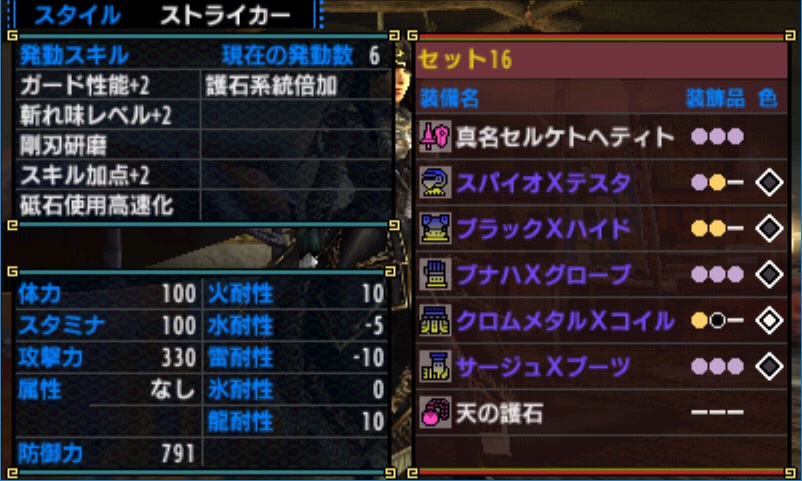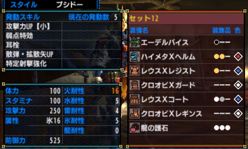 G級でレウスを狩ったあたりからこの装備を使い続けていますね。
